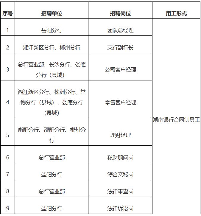新时代、新征程。湖南银行2025年下半年滚动社会招聘现已启动,这里有良好的工作氛围、优厚的薪酬待遇、广阔的发展平台,诚邀充满激情的你,开启新未来!