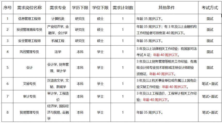 (六)其他条件详见附件1(郴州市国资控股集团有限公司员工招聘岗位信息表)。