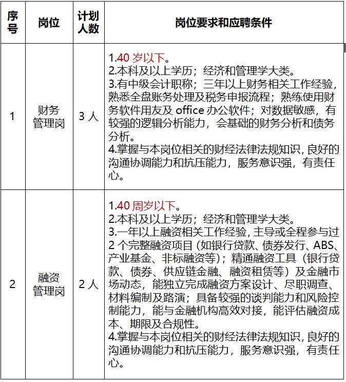招聘会计管理和融资管理2个岗位的专业人才,共5人,招聘岗位及要求详见《株洲新芦淞产业发展集团有限公司2025年公开招聘岗位计划表》(附件1)。